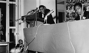 Consider David Austin’s telling of the events that transpired in Montreal in 1968 when a group of intellectuals of revolutionary inclinations gathered for the Congress of Black Writers. This was the third iteration of the convening of the Presence Africaine in 1956, which was followed by the Second Congress in Rome in 1959. Montreal was of particular importance. Led and organized by the Caribbean Conference Committee, it centered the Caribbean not as adjacent to Europe as the colonial divisions might have shown, but rather as an epicenter of the chronicles of C.L.R. James, George Lamming, and Bobby Hill, among others who had gathered there. At that point, it had been thirty years since James had published The Black Jacobins, the book that, in narrating the story of Toussaint L’Ouverture and the Haitian revolution, provided a map for demarcating the Caribbean—and arguably the Atlantic as a whole—through lines of Black revolt. Although many of the Conference attendees were James’s pupils (directly or indirectly), he was not there as a teacher, but to establish the dynamism of genealogies. In other words, his presence was not to situate an origin,7 but rather to point to the multitude of forces and temporalities the historical process is imbued with, and to the many colluding paths.